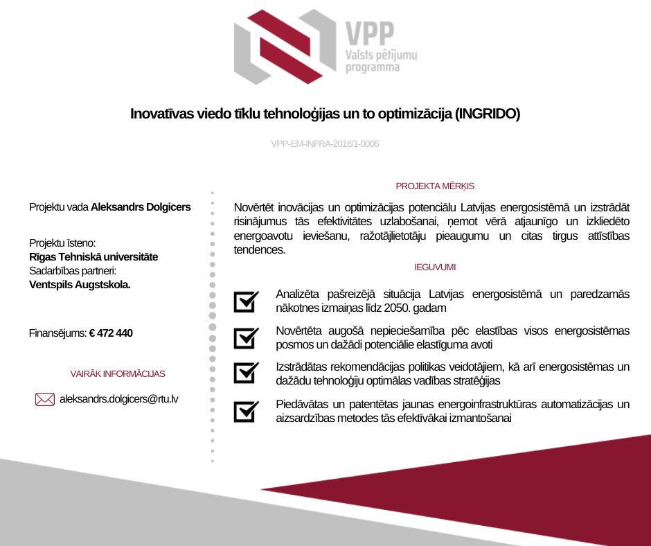 Valsts pētījumu programmas “Enerģētika” atklātais projektu pieteikumu konkurss “Ilgtspējīga enerģētikas infrastruktūra un tirgus”