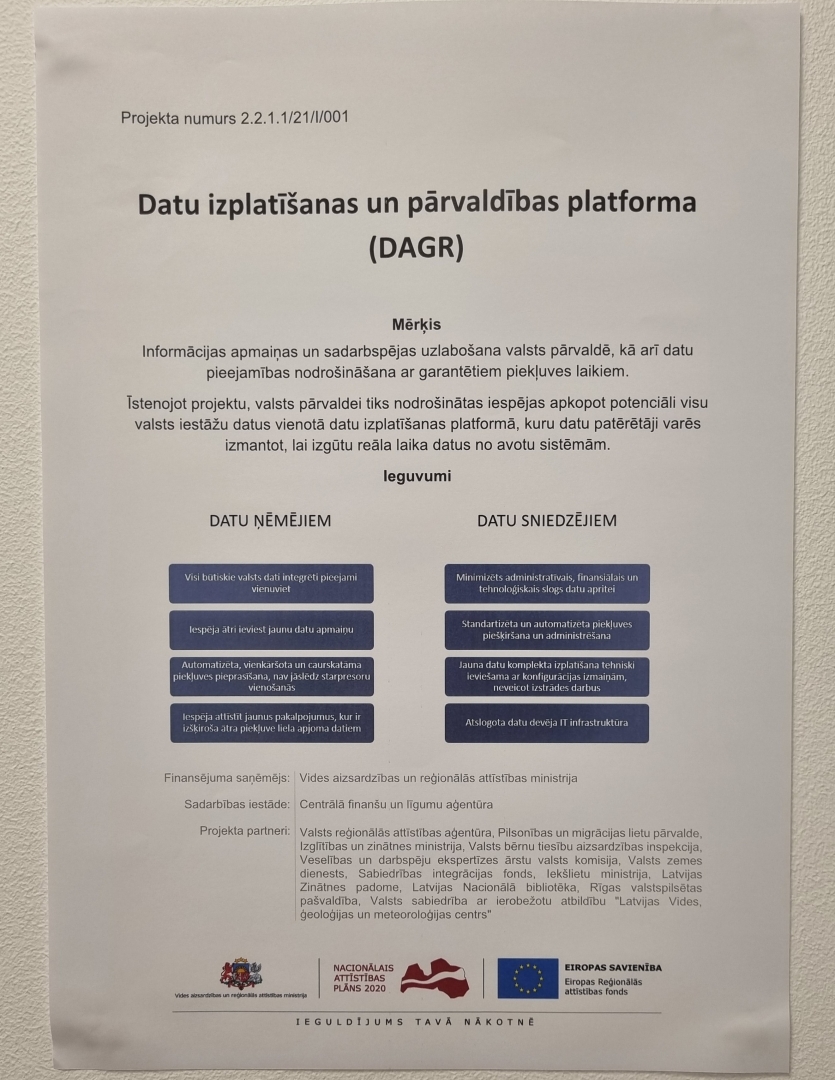 Latvijas Zinātnes padome kā sadarbības partneris piedalās Vides aizsardzības un reģionālās attīstības ministrijas projekta “Datu izplatīšanas un pārvaldības platforma (DAGR)” Nr. 2.2.1.1/21/I/001 (turpmāk – Projekts) īstenošanā.