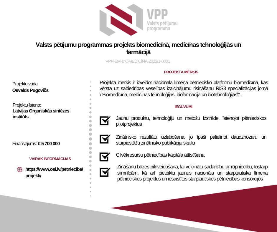 - Vitkovska V.; Kazak M.; Sūna E. Makrocikliskie tubulīna polimerizācijas inhibitori kā pretvēža līdzekļi. - 2023, LVP2023000126